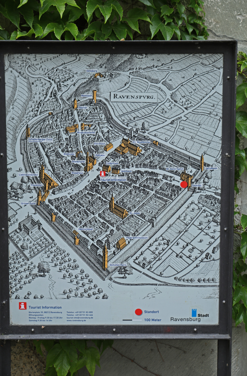 Historischer Stadtplan von RavensburgUntertor Zugang zur AltstadtMarienplatz BlaserturmDie Schussen auf dem Weg zum BodenseeLederhausRathaussaalSchloss Altshausen mit Skulpuren der Herzogin Diane von WürttembergAuf dem Weg nach SteinhausenWallfahrtskirche SteinhausenAltar in Kirche Steinhausen