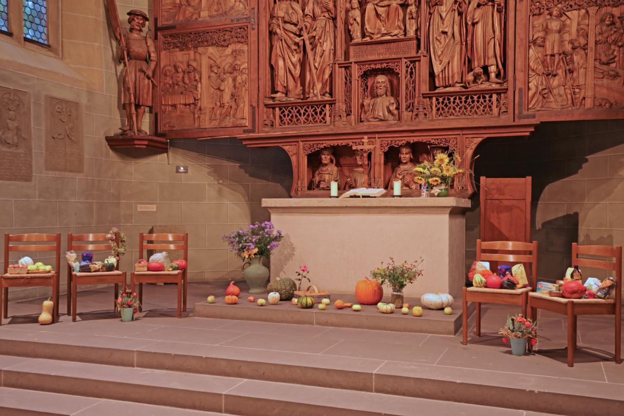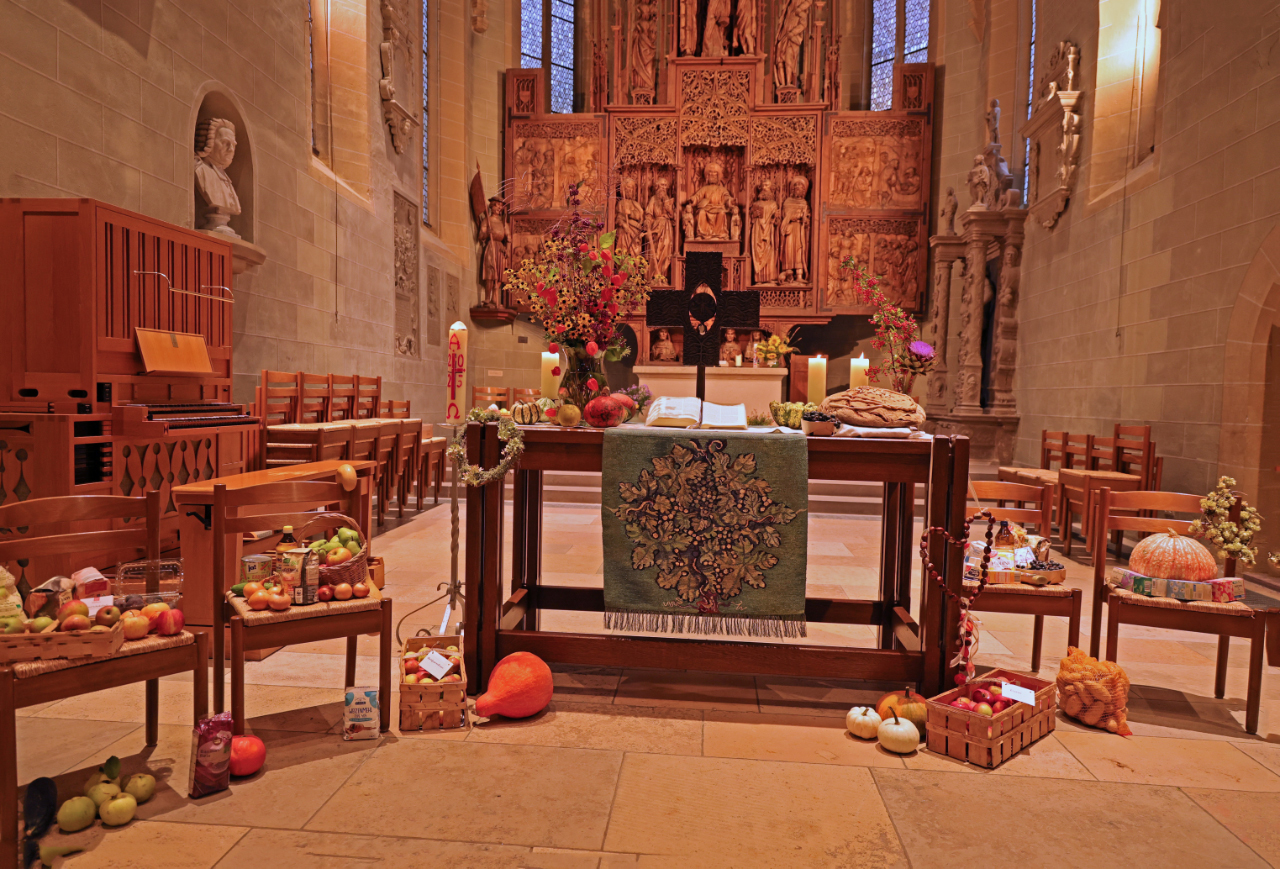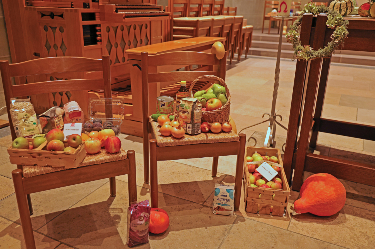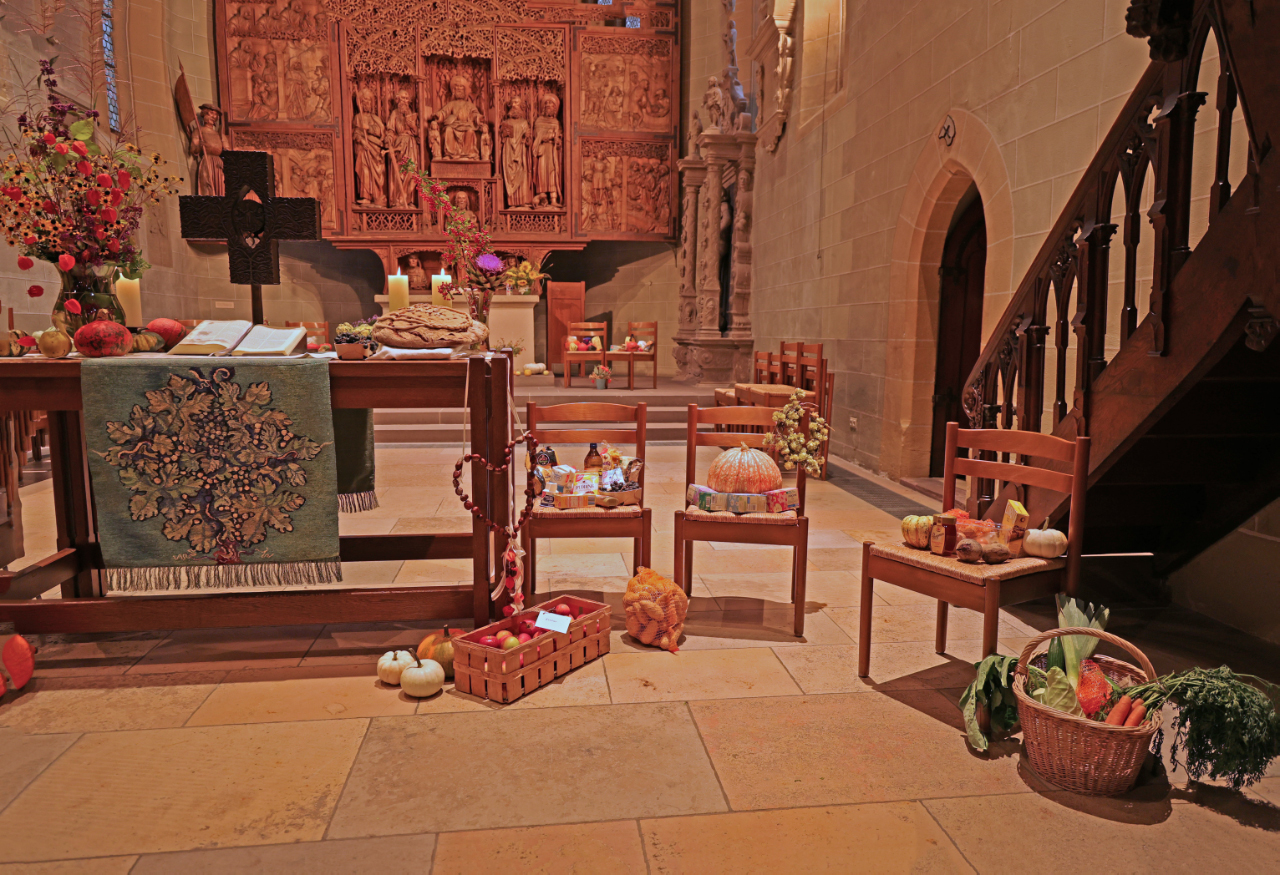 Am Samstag 27.9. wurden die Erntegaben in der Schlosskirche aufgebaut.