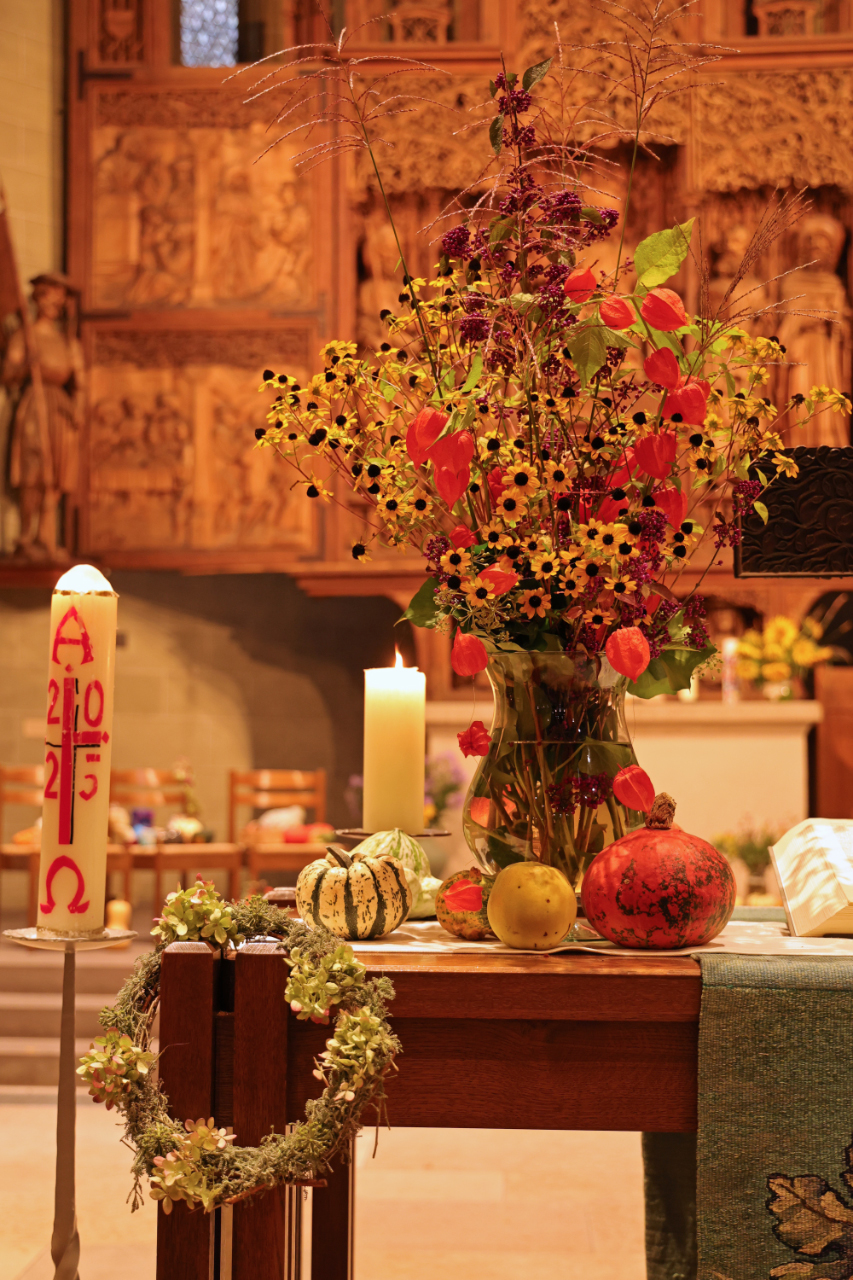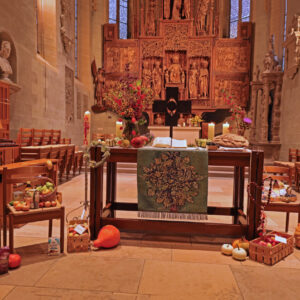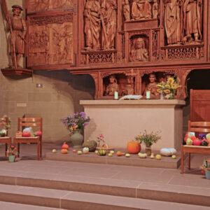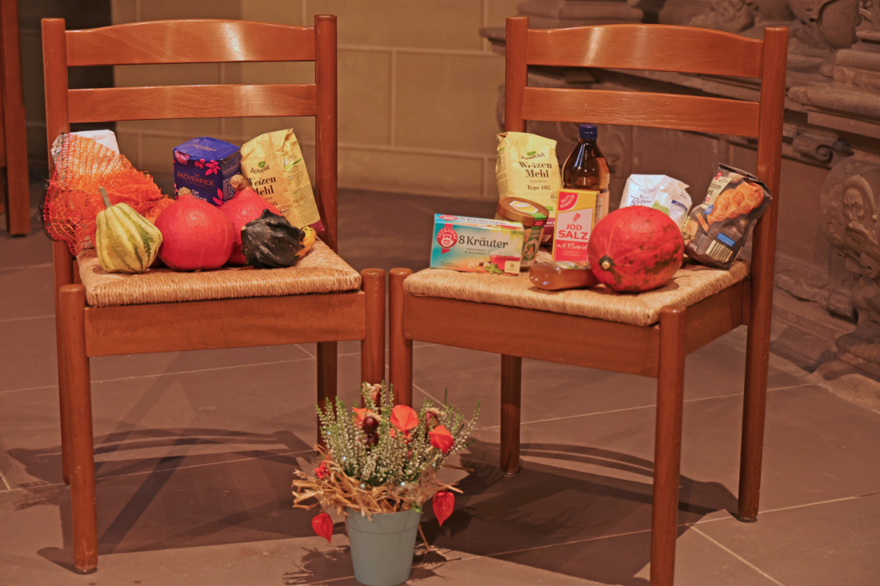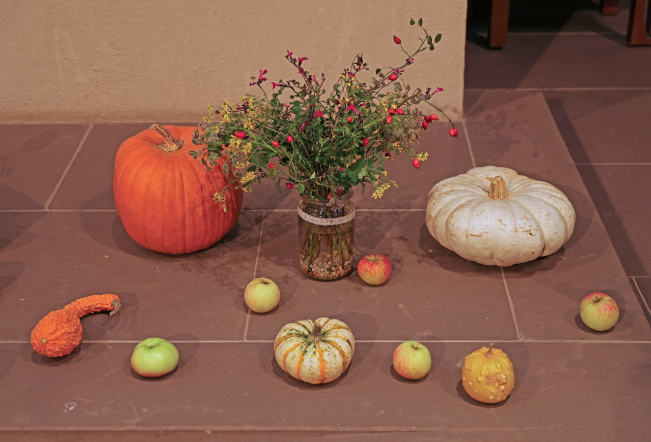 Am Samstag 27.9. wurden die Erntegaben in der Schlosskirche aufgebaut.